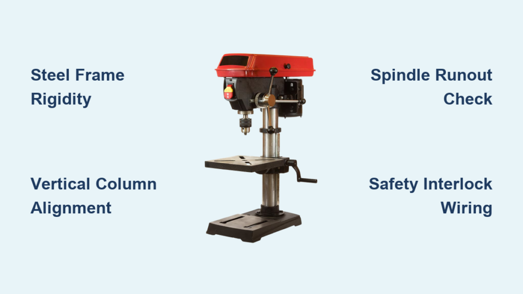 If your drill press “walks” across the bench, your base is too light. Add 50 lbs of weight (steel plates work well). For high-frequency buzzing, check belt tension: a properly tensioned timing belt should deflect 1/8″ when pressed with 5 lbs of force. If vibration persists, your linear rails aren’t parallel—recheck alignment with a dial indicator.