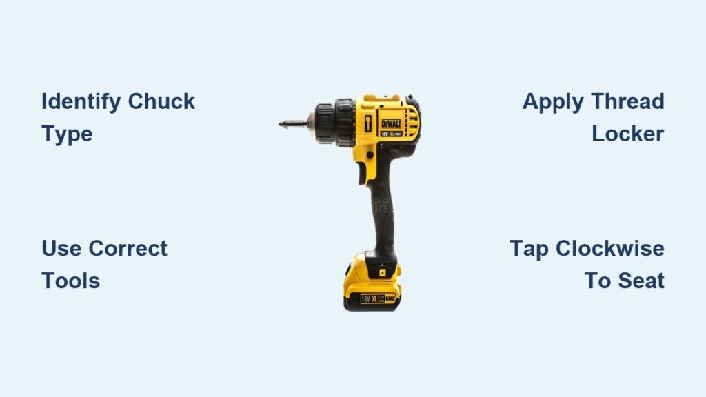 Replacing your DeWalt cordless drill’s keyless chuck correctly restores precision, safety, and functionality to your essential tool. By identifying your specific chuck type first and using the appropriate removal techniques, you’ll avoid costly mistakes that damage your drill. Always prioritize safety with proper eye protection and follow torque specifications—over-tightening during installation is the #1 cause of premature chuck failure. With your new chuck properly installed, your DeWalt drill will grip bits firmly and deliver smooth, wobble-free performance for years to come. For ongoing reliability, clean your chuck mechanism monthly and avoid over-tightening bits during regular use.